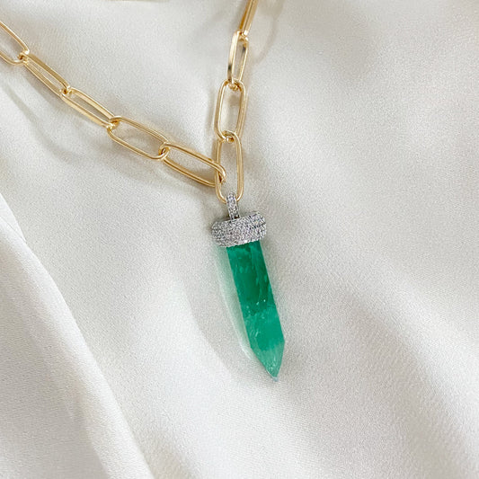 2 lines links chain with pencil emerald
