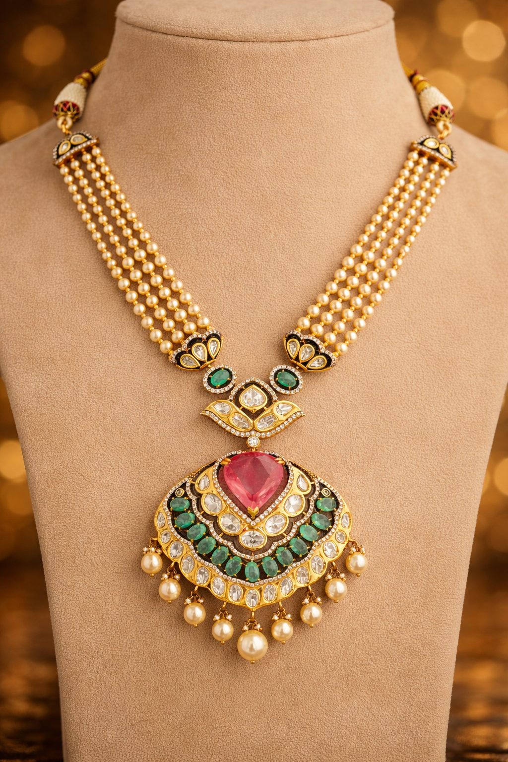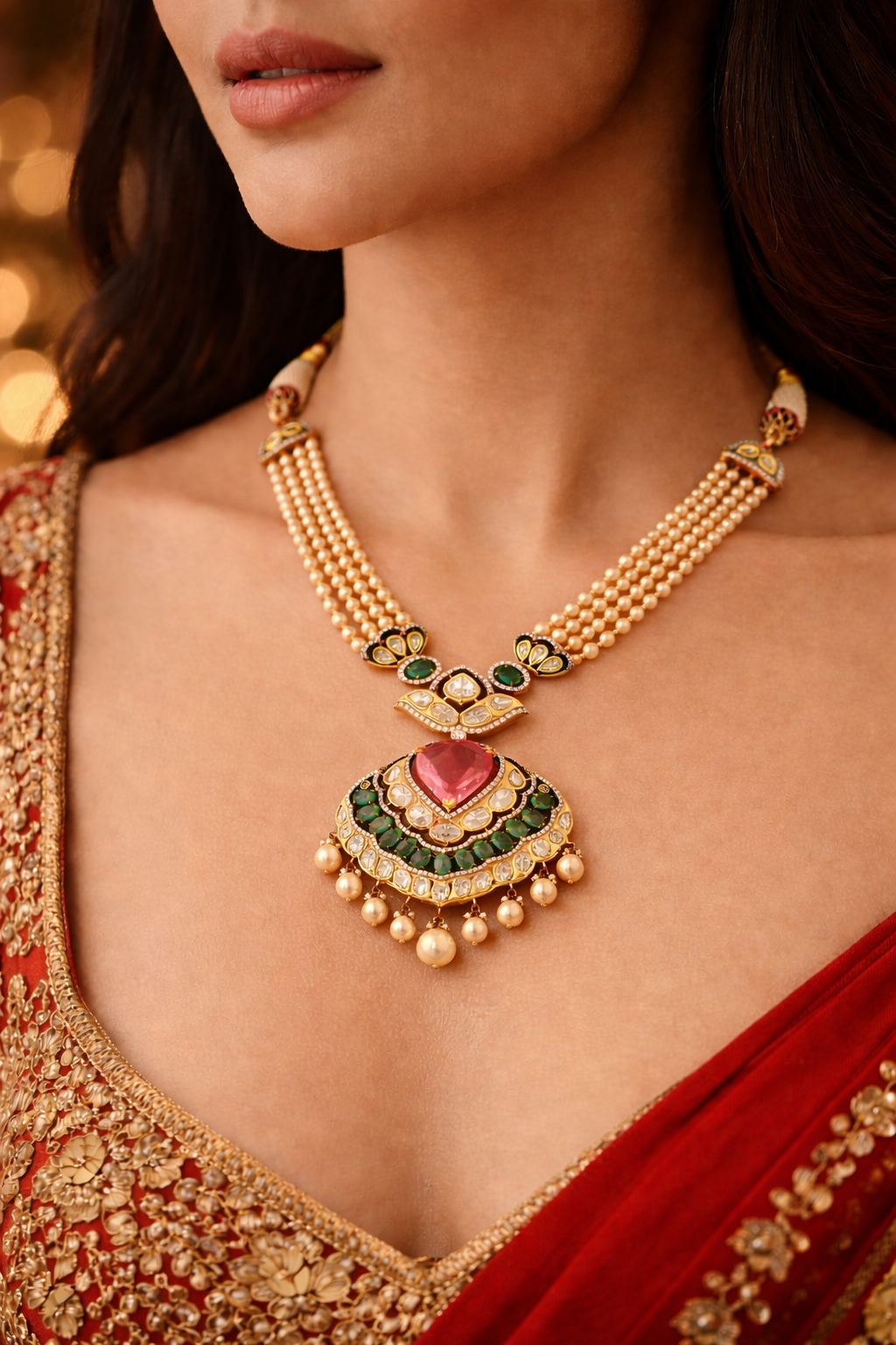 Our jewellery features a beautiful blend of silver alloy, and Kundan stones.